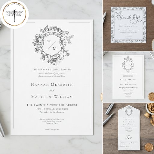 Elegant Black Chinoiserie Bird Crest Wedding Invitation