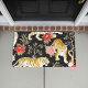Elegant Black Chinoiserie Tiger and Peony Pattern Doormat