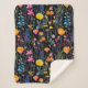 Elegant black colorful wildflowers watercolor sherpa blanket