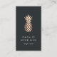 Elegant vertical business cards feature a faux copper foil pineapple illustration on a rich black background with two lines of custom text in crisp white. Customize the back with your full contact details, displayed beneath a smaller pineapple illustration.