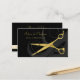Elegant Black Curls Faux Gold Scissors Hair Salon Appointment Card