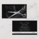 Elegant Black Curls Silver Scissors Hair Salon Appointment Card