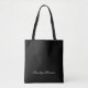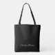 Elegant black custom script monogram name tote bag