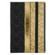 Monogrammed elegant black floral damask pattern and gold sparkling glitter with gold stripe