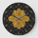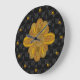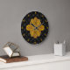 Chic wall clock done in a black on black floral damask pattern. Elegant graphics of gold studs represent the numbers, around the edge, and a lovely gold tone Art Deco style decoration in the middle of the clock. Customise to add text. Lovely clock for any room of the house or office.