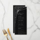 An elegant diamond spider web and stars against a black background. Room for four courses plus extra details at the bottom. All text is fully editable, so you can easily add or delete text and change the font style/size/colour/layout to suit your needs. The back is mostly blank, so more text can be added there if you wish. This design is available in other colours, on different sized card-stock and also on coordinating invitations and accessories.