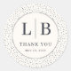 This elegant wedding sticker features a minimalist circular design with the initials "L | B" prominently displayed in bold serif typography, surrounded by a subtle dotted pattern. The color palette is simple, using black text on a clean white background to create a sophisticated contrast. Customizable date placeholders allow for personalization, making it perfect for expressing gratitude at your special event. The overall style is modern and refined, ideal for adding a touch of class to wedding favors or thank-you notes.