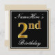 Elegant, Black, Faux Gold 2nd Birthday + Name Invitation