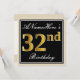 Elegant, Black, Faux Gold 32nd Birthday + Name Invitation
