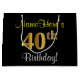 Elegant, Black, Faux Gold 40th Birthday + Name Large Gift Bag