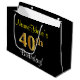 This simple, elegant birthday gift bag design features a personalised message like "NameHere’s 40th Birthday!" (with the "40th" having a faux/imitation gold-like colouring look) on a black coloured background. The name is in script-like, yellow-coloured text, and can be personalised. A personalised birthday gift bag like this could perhaps be used when giving a present or gift to somebody who is celebrating their fortieth birthday. [~Z0000258]