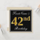 Elegant, Black, Faux Gold 42nd Birthday + Name Invitation