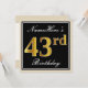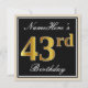 Elegant, Black, Faux Gold 43rd Birthday + Name Invitation