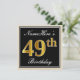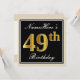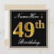 Elegant, Black, Faux Gold 49th Birthday + Name Invitation