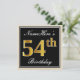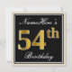 Elegant, Black, Faux Gold 54th Birthday + Name Invitation