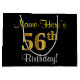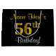 Elegant, Black, Faux Gold 56th Birthday + Name Large Gift Bag