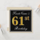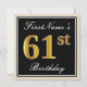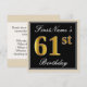 Elegant, Black, Faux Gold 61st Birthday + Name Invitation