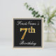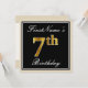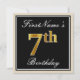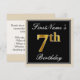 Elegant, Black, Faux Gold 7th Birthday + Name Invitation