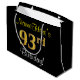 Elegant, Black, Faux Gold 93rd Birthday + Name Large Gift Bag