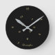 Custom, personalised, fun cool faux gold jumbled hours black acrylic round wall clock for your room, home, office. Its hours all appear to be jumbled, crazily placed, but amazingly it works! Simply type in your name / the name of bride & groom / husband & wife / family name, to customise. Makes a great custom, personalised gift for birthday, wedding, anniversary, holidays, christmas, and more.