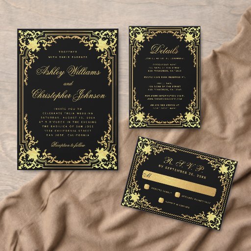 Vintage Black Faux Gold Elegant Wedding SuiteDesigned by Artifex Designs