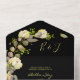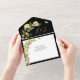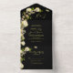 Elegant Black Floral Greenery Calligraphy All in One Wedding Invitation. Fully customisable, click to Customise Further to change font style, size and or colour.