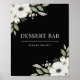 Elegant Black Floral Botanical Dessert Bar Sign