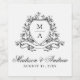 Elegant Black Floral Crest Monogram Wedding Wine Label