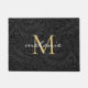 Elegant Black Floral Gold Monogram Doormat