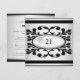 Silver & Black 21ST Birthday Party, Suitable for a Man or Woman. All Events, Celebrations, Announcements Anniversaries and Birthday Party Invitations. Suitable for all age birthdays and events. Rsvp is available upon request in similar style. Beautiful Stylish Light Silver Grey Speckled Glitter with Light silver Metal and Black Stripe Trims and Featuring Black and Silver Metal Oval Plates with Black Floral Trims. Floral Trim on back can be removed if needed to have more space for text. Change style of text with customise.
