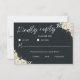 This elegant wedding RSVP card features a sophisticated black background adorned with soft white and blush floral accents. The modern calligraphy-style script adds a romantic touch, perfect for formal, classic, or modern weddings. Guests can easily mark their attendance and select their meal choice. Personalize with your names, date, and meal options for a seamless wedding stationery suite that complements any wedding theme.