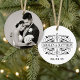 Personalize this newlywed keepsake holiday ornament with your favorite portrait from the wedding day (tip: crop photo to square shape before uploading). An elegant black monogram framed by vintage scrolls and flourishes can be personalized with the bride and groom names and wedding date on the back. White background color can be customized to match your photo!