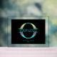 This eye-catching acrylic sign design makes a dramatic backdrop to set off your company logo. A simple black background and minimalist frame provide with an easy template to add your name or company name and tag line for office reception desk or store counter. Delete text and label if preferred for a smooth look for just a logo. Search ID507 to see other products with this design.