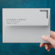 This wedding envelope features a minimalist design with a clean, elegant layout. The monochromatic color palette of black and white creates a sophisticated look, while the decorative geometric corner bracket adds subtle visual interest. The typography is formal and refined, using a serif font that enhances the classic feel. Perfect for formal occasions, this envelope combines simplicity with understated elegance, making it ideal for weddings or other special events.