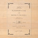 This elegant wedding invitation features a clean, sophisticated design with a crisp white background and deep black text. The layout is vertically orientated, showcasing a balanced composition with symmetrical decorative corner motifs that add a touch of classic elegance. A mix of script and serif fonts enhances the formal tone, while ample negative space ensures readability and emphasizes the importance of each detail. Perfect for a traditional yet modern celebration, this invitation conveys a mood of sophistication and anticipation, ideal for marking the special occasion of a wedding ceremony.