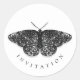 Introducing the Elegant Black Glitter Butterfly Envelope Seal, the perfect complement to your Elegant Black Glitter Butterfly Baby Shower Invitation. This exquisite sticker features a stunning illustration of a single butterfly, enhanced by its faux glittery black and white wings, creating a truly captivating design. The elegant serif curvilinear text reading "invitation" adds an air of sophistication to any correspondence.