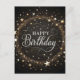 Elegant Black Glitter Happy Birthday Postcard