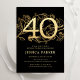Elegant black gold 40th birthday party invitation. Customisable modern feminine design featuring roses botanical accents and faux glitter gold. Simple floral invite card perfect for a stylish female bday celebration. Personalise with your own details. Printed Zazzle invitations or instant download digital printable template.