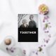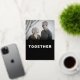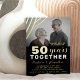 Elegant 50th Wedding anniversary invitation template. Simple and elegant typography with curved line detail in gold on a black background. All your party details are contained on the front of the card with a personal photo.