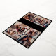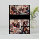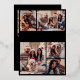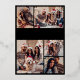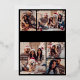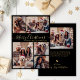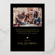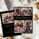 Modern Simple Elegant Calligraphy Black and Gold 5 Photo Collage Merry Christmas Script Foil Holiday Card. This festive, minimalist, whimsical five (5) photo holiday greeting card template features a pretty grid photo collage and says „Merry Christmas”! The „Merry Christmas” greeting text is written in a beautiful hand lettered swirly swash-tail font script in gold on black colour background. On the reverse side with your greeting message template with a little heart doodle on white and one horizontal photo template. Pretty greeting card for your family and friends in Christmas Holiday season.
