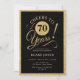 70th birthday party invitation in black and faux glitter gold. Simple modern design, perfect for an elegant men's or women's bday celebration. Cheers to 70 years! Customize with your own details. Can be personalized into any age. Printed Zazzle invitations or instant download digital printable template.