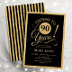 90th birthday party invitation in black and faux glitter gold. Simple modern design, perfect for an elegant men's or women's bday celebration. Cheers to 90 years! Customize with your own details. Can be personalized into any age. Printed Zazzle invitations or instant download digital printable template.