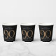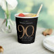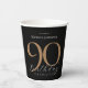 Elegant Black Gold 90th Birthday Paper Cups. Celebrate a milestone birthday with our Black and Gold Simple Elegant design, perfect for adding a touch of sophistication to your special day. This customisable design features a sleek black background adorned with elegant gold accents, creating a timeless and classy look. Ideal for those who appreciate a refined aesthetic, this invitation sets the tone for a celebration that will be cherished for years to come.