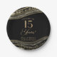 Elegant Black Gold Agate 15th Anniversary Party Paper Plate