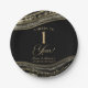 Elegant Black Gold Agate 1st Anniversary Party Paper Plate