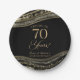 Elegant Black Gold Agate 70th Anniversary Party Paper Plate