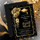Celebrate your graduate in style with this elegant black and gold graduation party invitation. Featuring festive gold balloons, sparkling confetti accents, and a classic graduation cap, this design blends celebration with sophistication. The rich black background and refined gold details create a polished look perfect for honoring high school or college graduates. Fully customizable with the graduate’s name, class year, date, time, and location, this invitation sets the tone for a memorable gathering and a proud milestone.