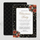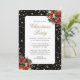 Elegant black and gold Christmas party invitation featuring gold confetti, flowers and Christmas ornaments. Easily personalize this invitation with your party details.