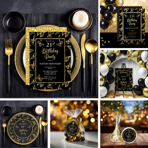 Butterflies - Black | Gold Glitter 21st BirthdayDesigned by Tammy Yargates
