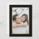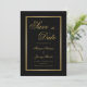 Announce your wedding in style with this elegant custom save the date featuring faux gold script with your wedding date and other details to personalise bordered in a shiny faux gold frame on a simple black background. The back of the save the date has a photo for you to change to your own in a gold frame. Designed by Susan Coffey.